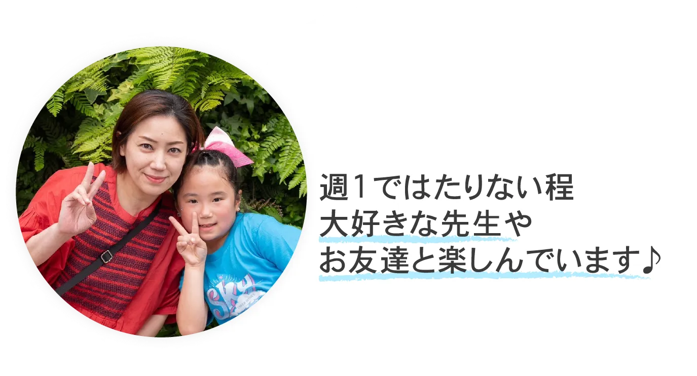 ここの教室では先生、生徒みんなが仲良くて、毎週楽しみに通っています!